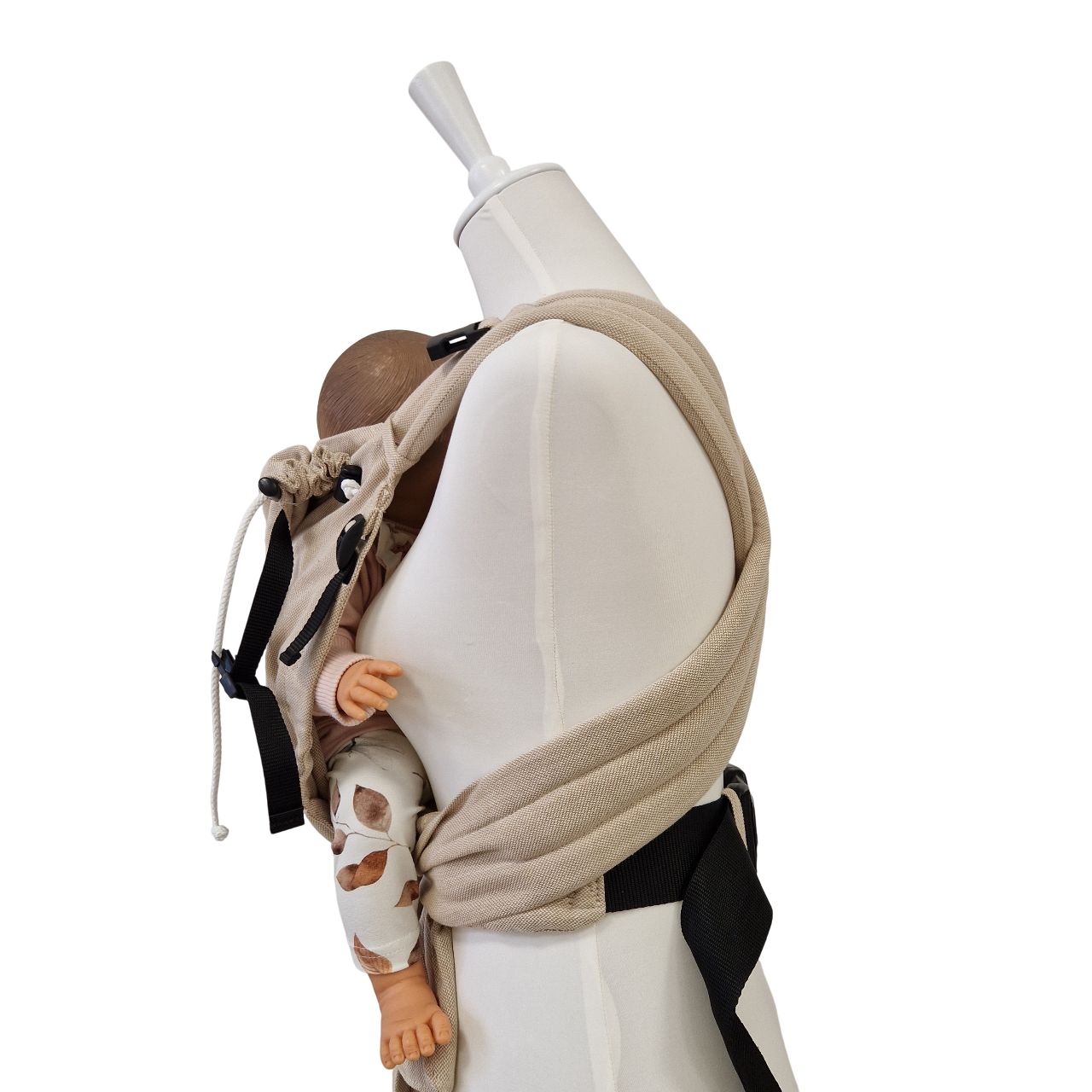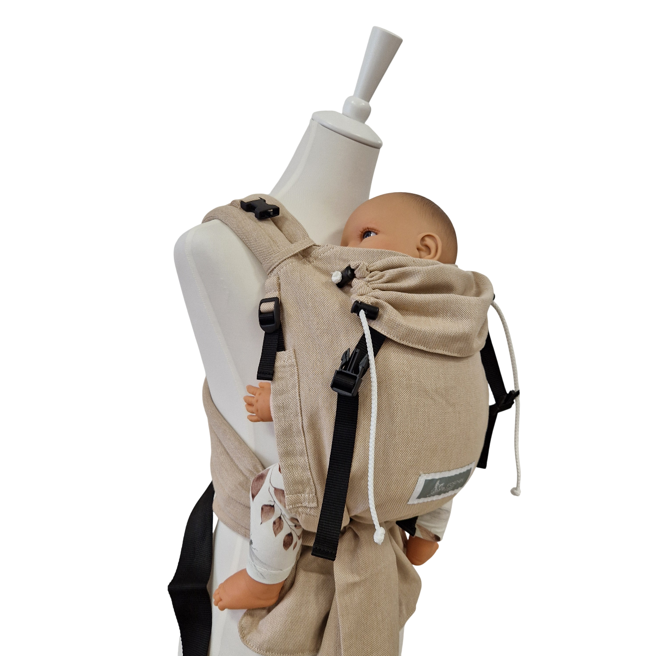 Optimally adjustable half-buckle baby carrier in the trendy color natural
