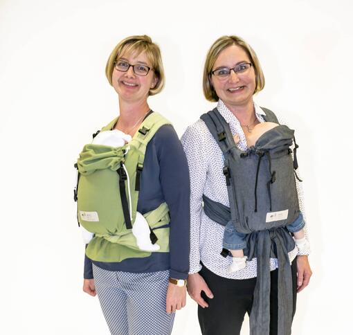 Der Bereich Babytragen und Tragetücher ist uns als Eltern von 2 Kindern kein komplett neues Feld, da wir selbst Trageeltern waren. Unsere Kinder sind mittlerweile aber aus dem Tragealter herausgewachsen. Beruflich kommen wir beide nicht aus dem Textilbereich. Aber zumindest sind die Themen Produktion, Handel und Ecommerce in den Vitas von uns beiden stark verankert.
